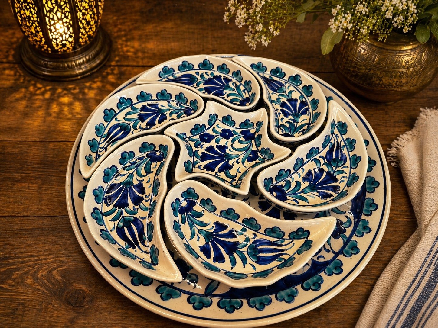 Bring elegance and tradition to your table with this authentic handmade Turkish ceramic appetizer serving set.
