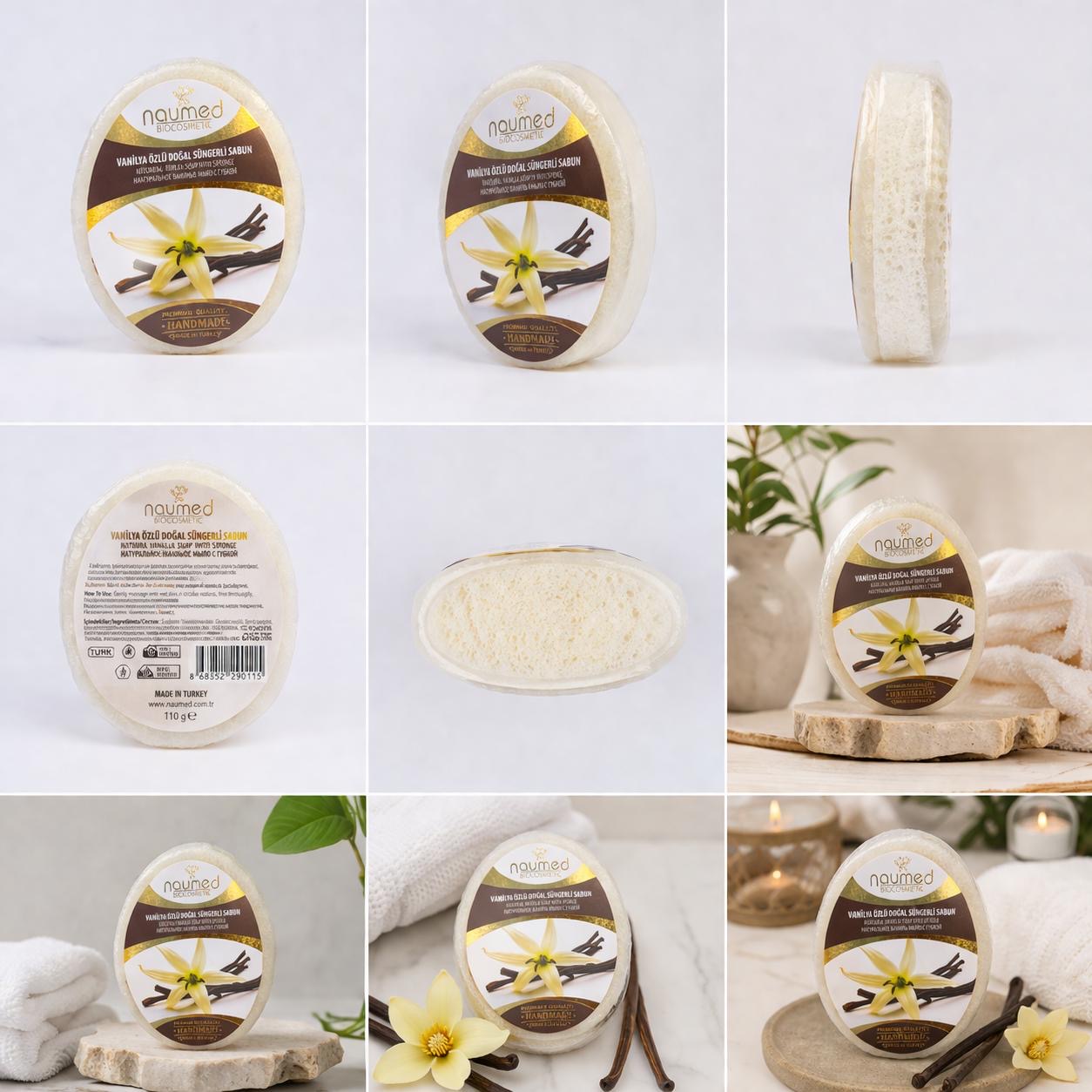 Natural handmade soap with built-in sponge for gentle exfoliation and easy daily cleansing. “No need for a separate sponge – everything you need in one bar.”